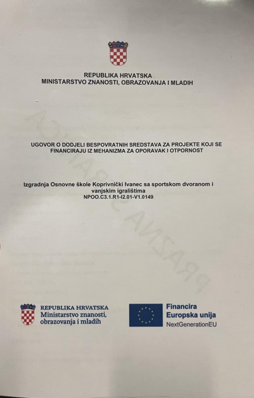 Župan Koprivničko – križevačke županije, g. Tomislav Golubić, danas je u Dubrovniku potpisao Ugovor o dodjeli bespovratnih sredstava za izgradnju nove škole sa sportskom dvoranom i vanjskim igralištima u Koprivničkom Ivancu!